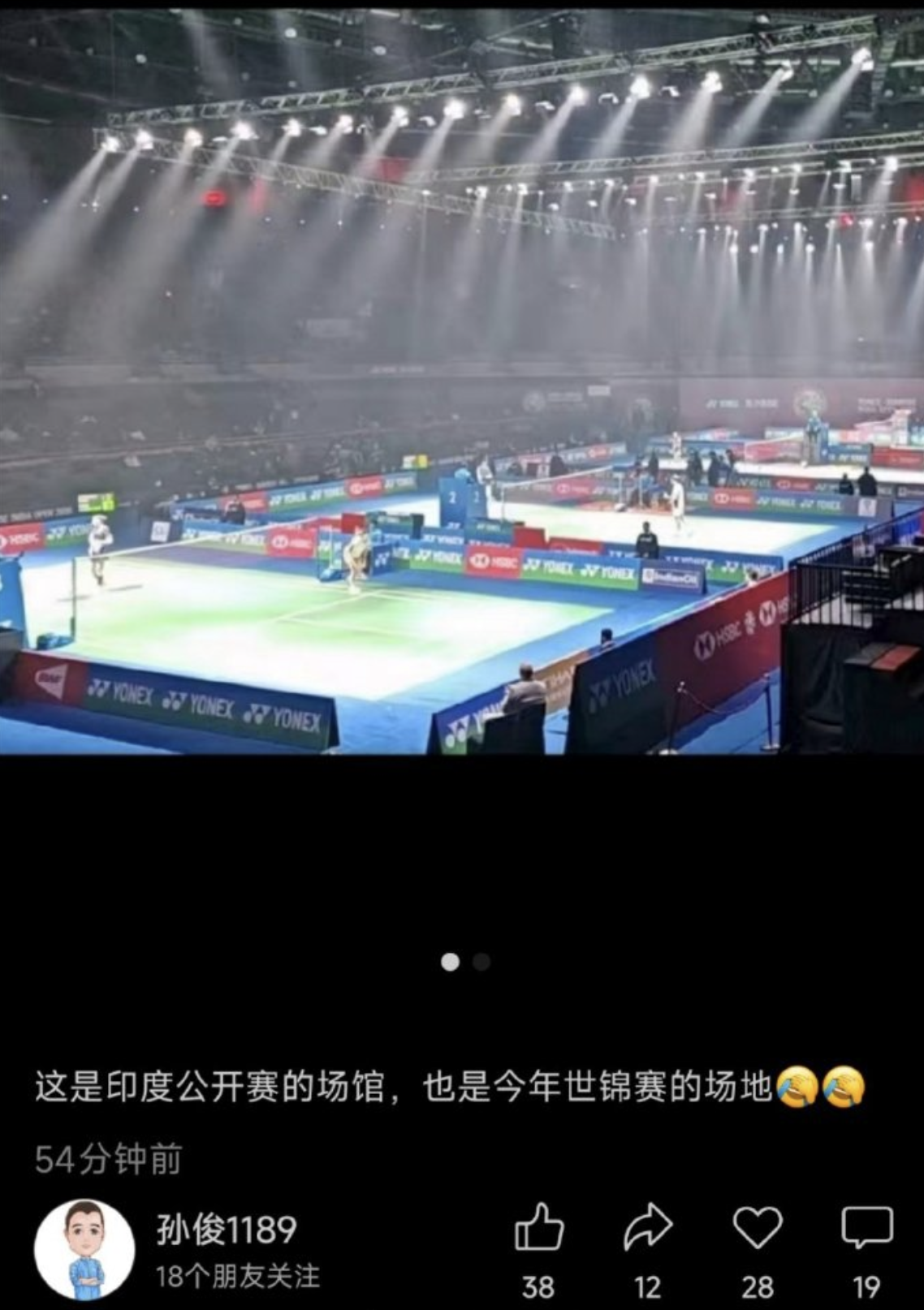 与此同时,国羽教练孙俊也在社媒吐槽:“这里就是印度公开赛的场馆,也是今年世锦赛的场地。主要是卡嗓子啊,要戴口罩打球。”