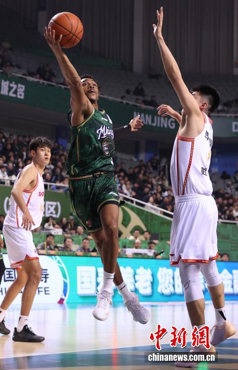 1月16日晚,在江苏南京举行的2025-2026赛季中国男子篮球职业联赛(CBA)常规赛比赛中,南京天之蓝队(绿衣)主场115比86战胜深圳马可波罗队(白衣)。图为南京天之蓝队球员汉兹(右二)在比赛中上篮。中新社记者 泱波 摄
