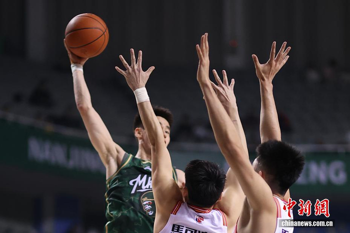1月16日晚,在江苏南京举行的2025-2026赛季中国男子篮球职业联赛(CBA)常规赛比赛中,南京天之蓝队(绿衣)主场115比86战胜深圳马可波罗队(白衣)。图为南京天之蓝队球员郭昊文(右二)在比赛中上篮。中新社记者 泱波 摄